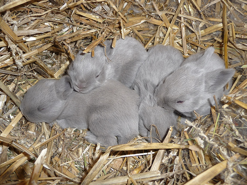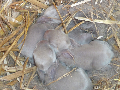 Die neugeborenen Kaninchen brauchen anfangs viel Wärme